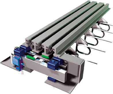可按車道布局,在無需傷及伸縮縫槽區(qū)混凝土及錨固系統(tǒng)的情況下,實現(xiàn)橋梁伸縮裝置4小時內(nèi)的快速更換,并恢復(fù)交通。